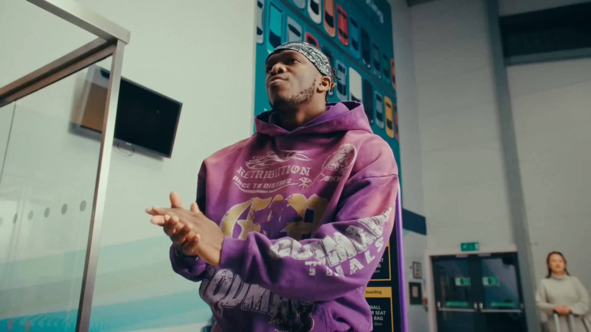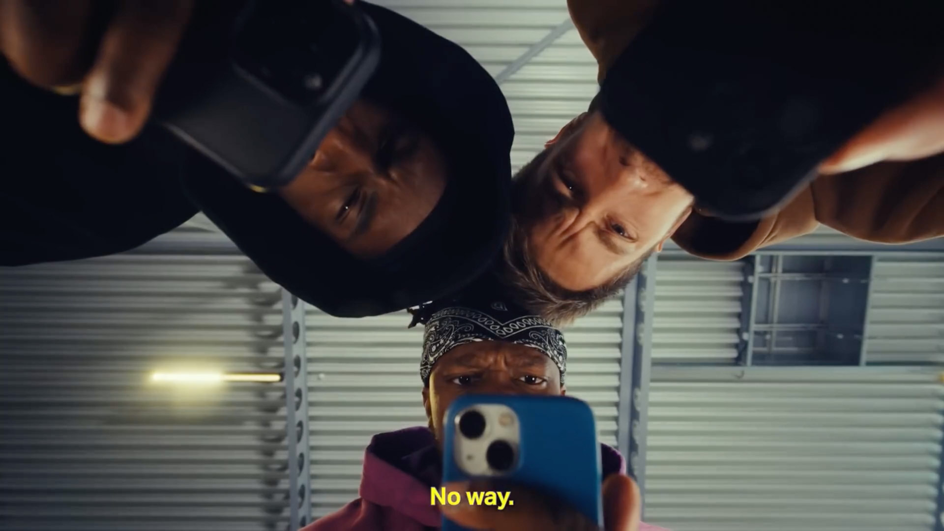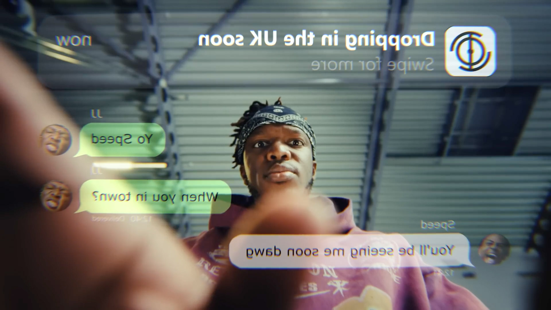 2D compositing was used to integrate a flying ball into the scene, with stylised text tracked and composited to form a digital phone interface.