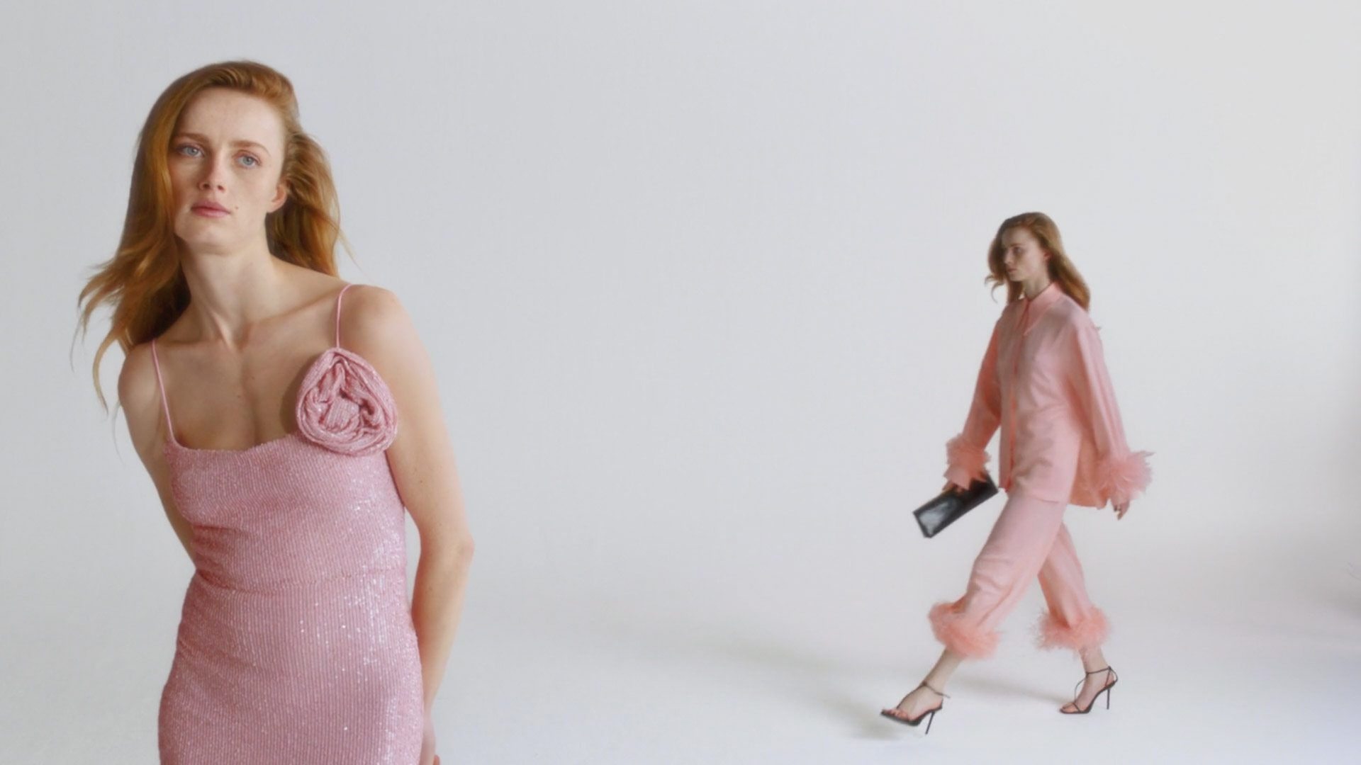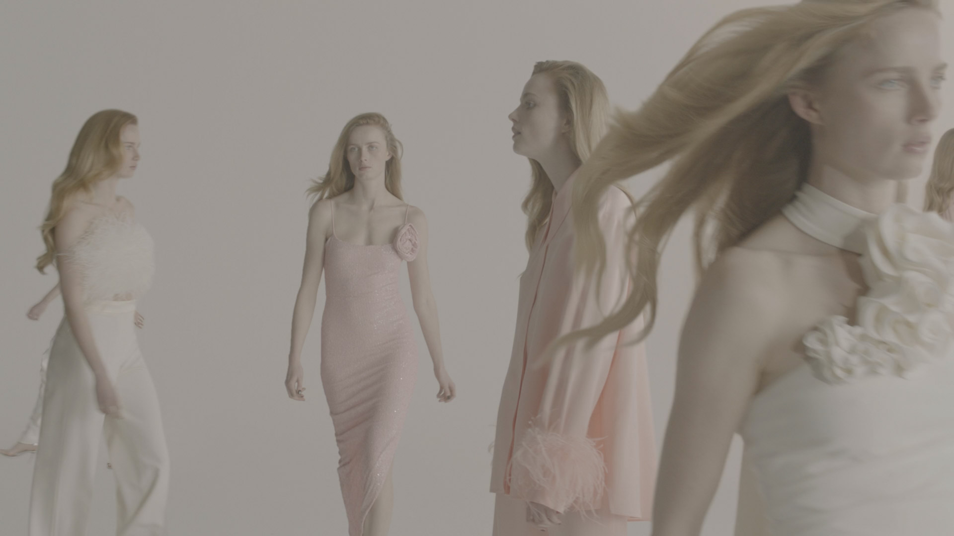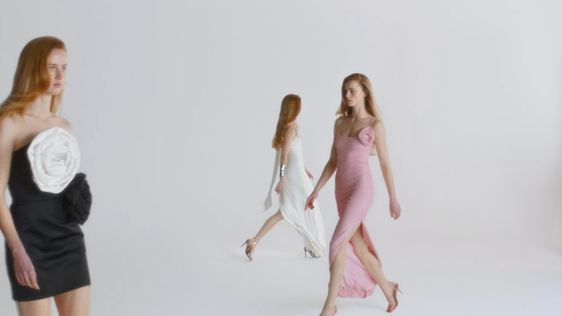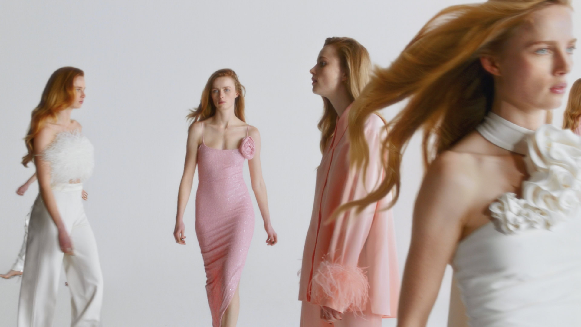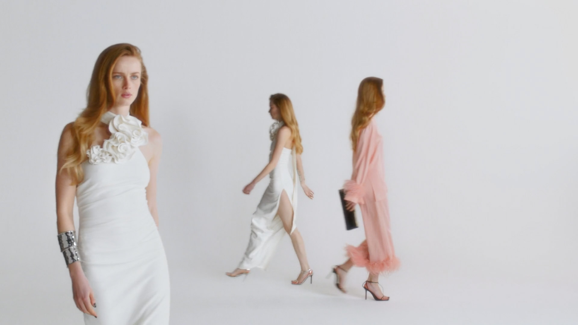 Multiple performance plates were layered to create a synchronised sequence, with cleanup and set extensions extending the white backdrop into a seamless infinite floor.