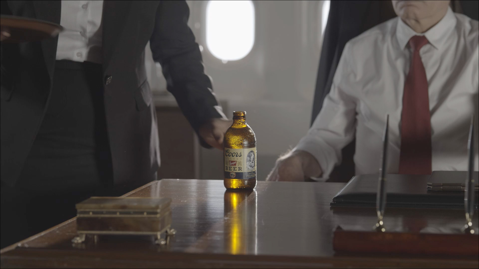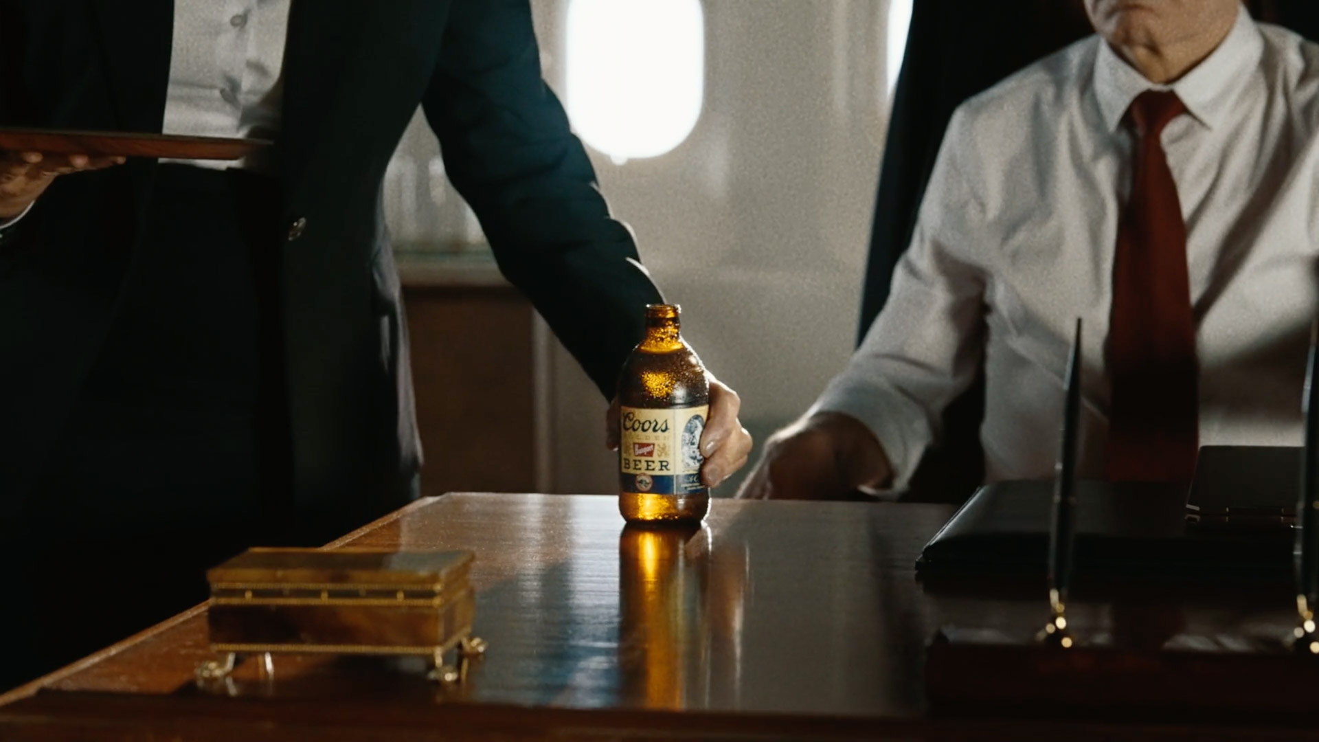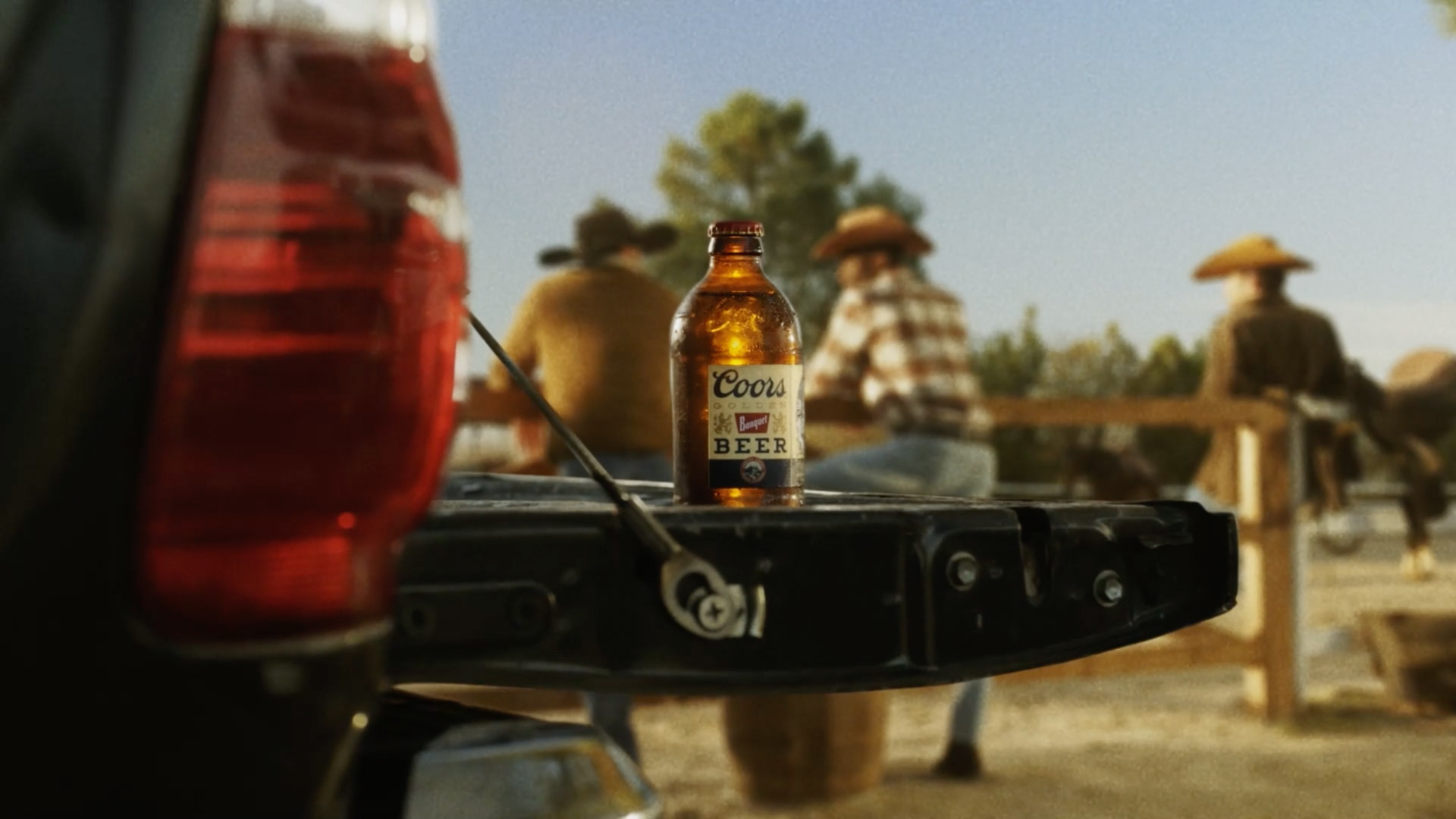 Digital cleanup and logo replacement were applied to the beer bottles, with tracking and compositing used to align updated branding onto the glass.