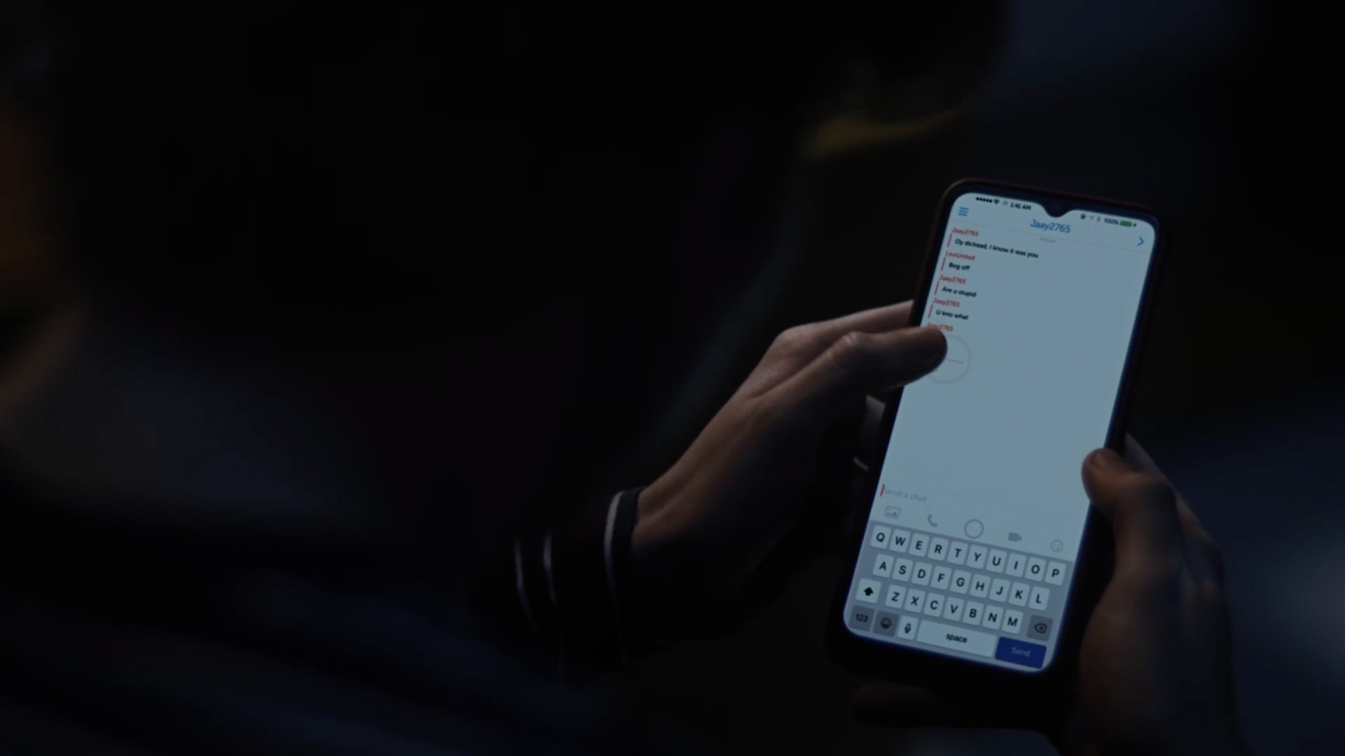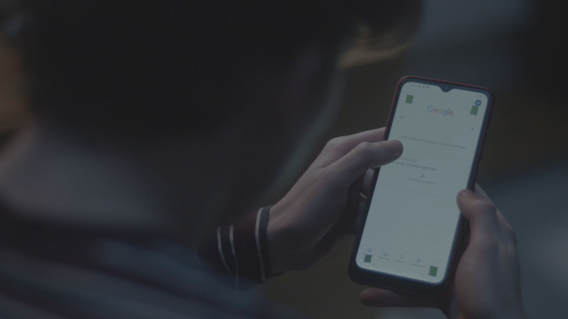 A mobile phone POV was composited with screen replacement, distortion, and glass effects to integrate the interface into the device.